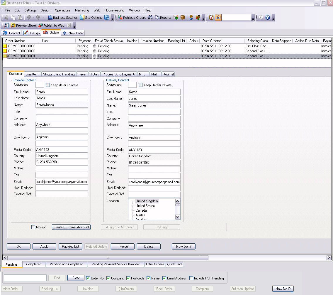 If you wish to see the details of an order you double click on the order and a modal window opens with the details on various tabs.