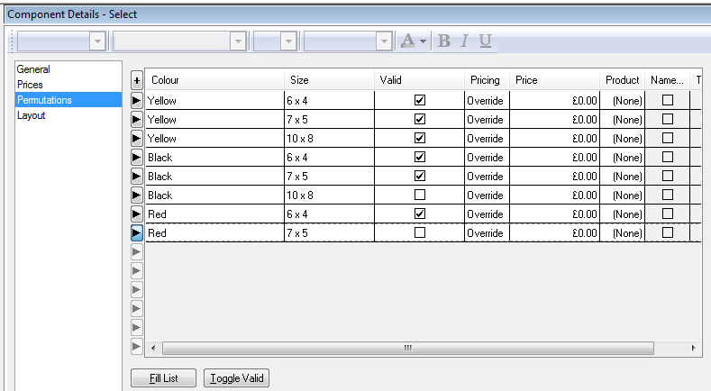 NB:The ‘Fill List’ button is disabled if all possible combinations are already listed in the table.