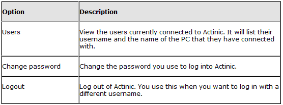 Once logged in, all users can access the following login/user features via the 'Settings' menu.