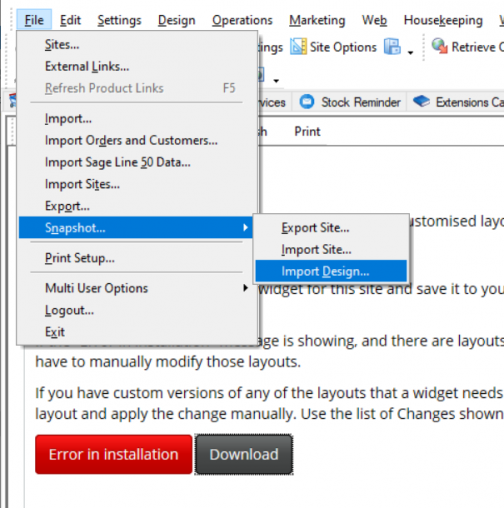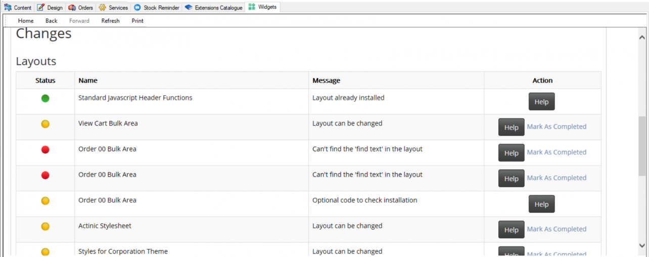 If it fails to apply all of the necessary changes, then the red 'Error in installation' button will appear against its entry in the Widgets tab.