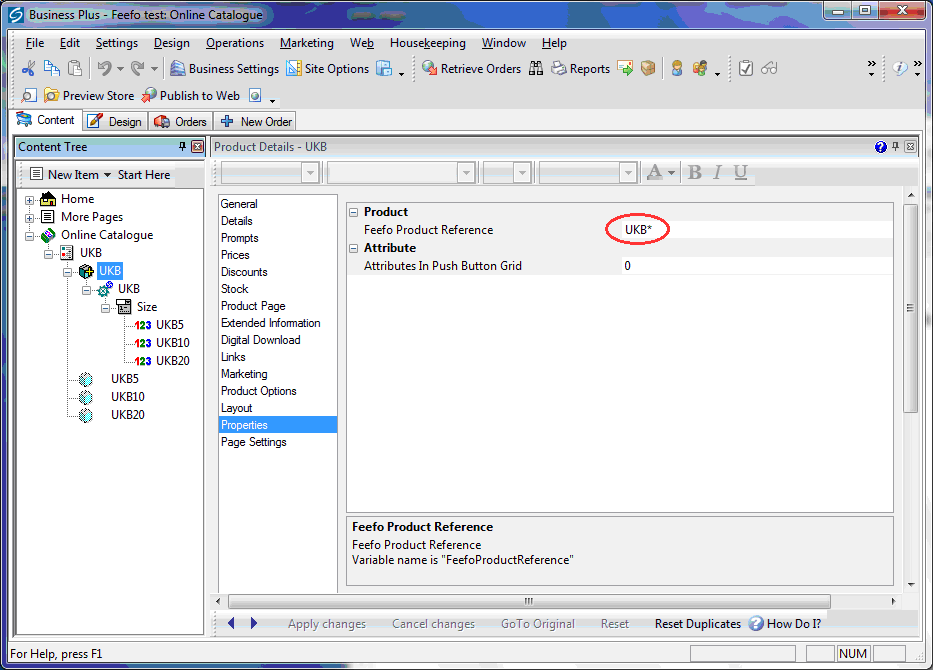 You are now ready to enter the details into each product in SellerDeck: - Click on the main product in SellerDeck, and click on the properties panel.
