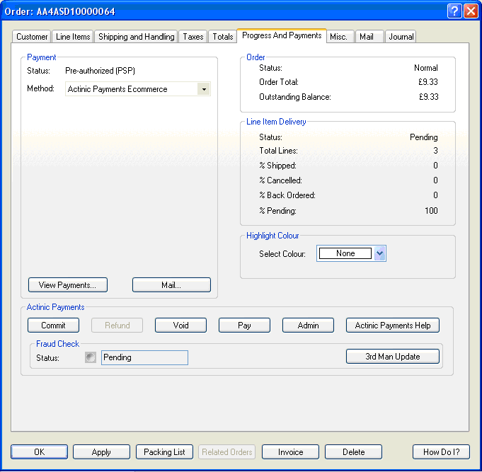 Once the item on back order is back in stock and ready to be despatched, go open the back order and go to the ‘Progress and Payments’ tab of the back order and commit the outstanding amount. (To do this follow the instructions below for ‘Committing the outstanding payment’.)