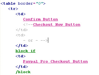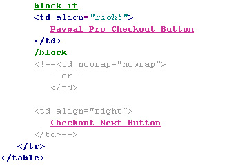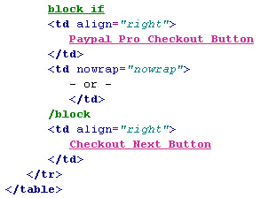 *move the 'block if' tag to a new line directly above the 'Paypal Pro Checkout Button' variable