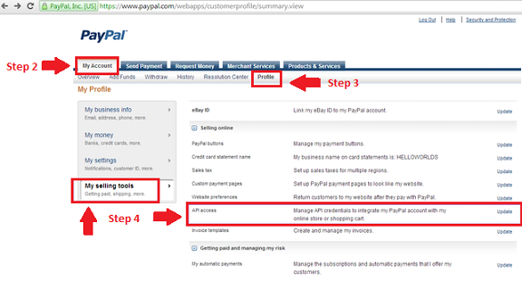 - Click ‘Set up PayPal API credentials and permissions’ under Option 1.