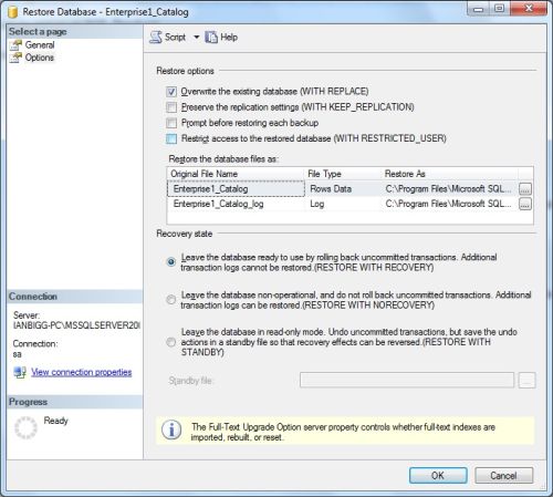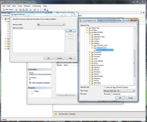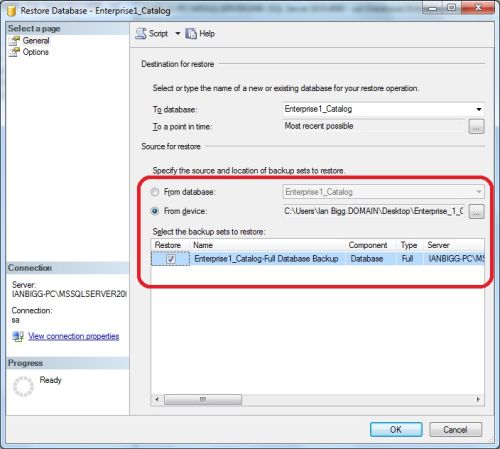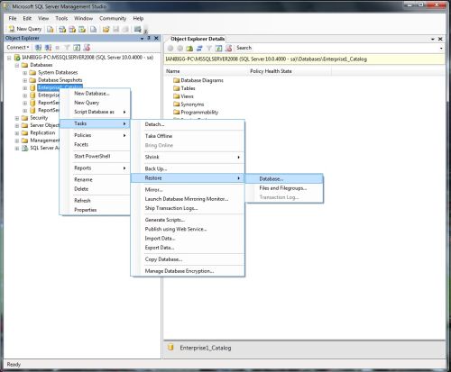- Right click on the database and go to ‘Tasks | Restore | Database…’