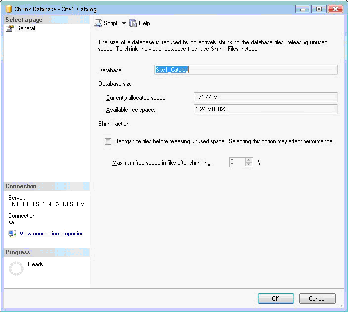 Instead, there is an option to ‘Shrink’ the database from within MS SQL Server Management Studio.