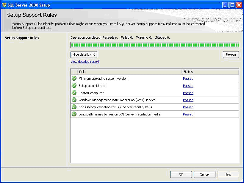 Again, you want to see a list of ticks. If there are any failures or warnings, you will be able to view the details by clicking the link on the right.