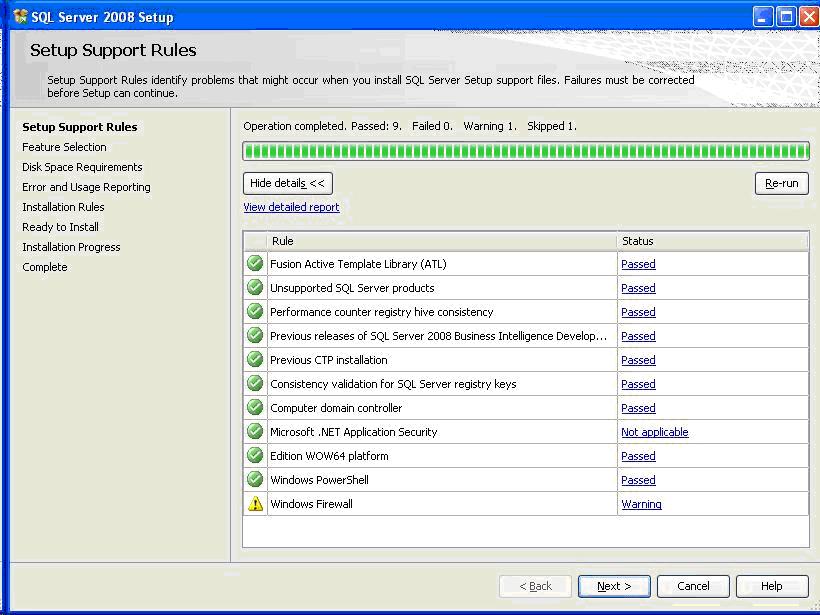 - This will open a new window, which begins the setup wizard. The first screen prompts you to install and setup support rules: