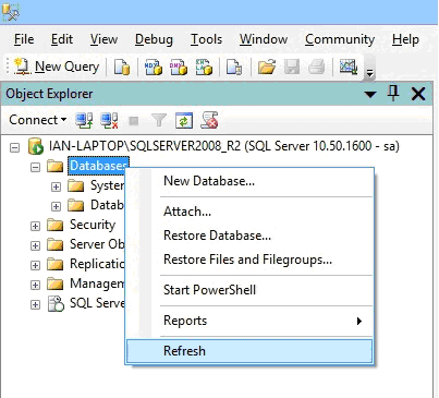 - Open ‘Microsoft SQL Server Management Studio’ from ‘Start | All Programs | Microsoft SQL Server’