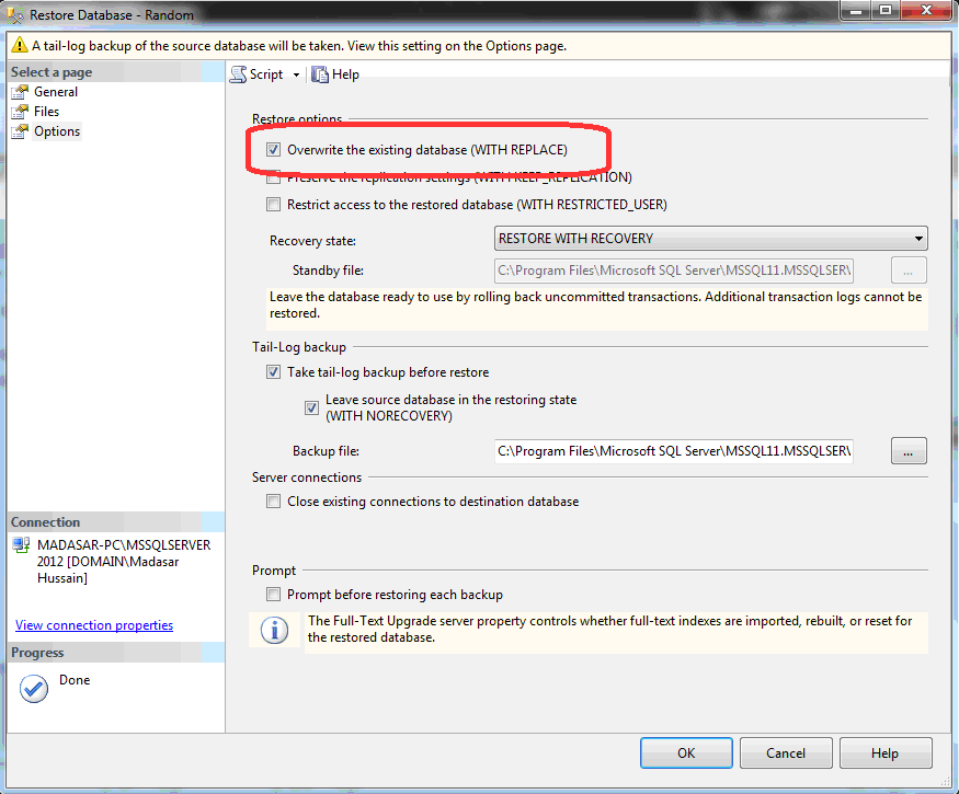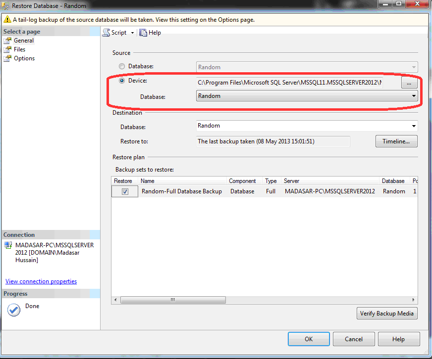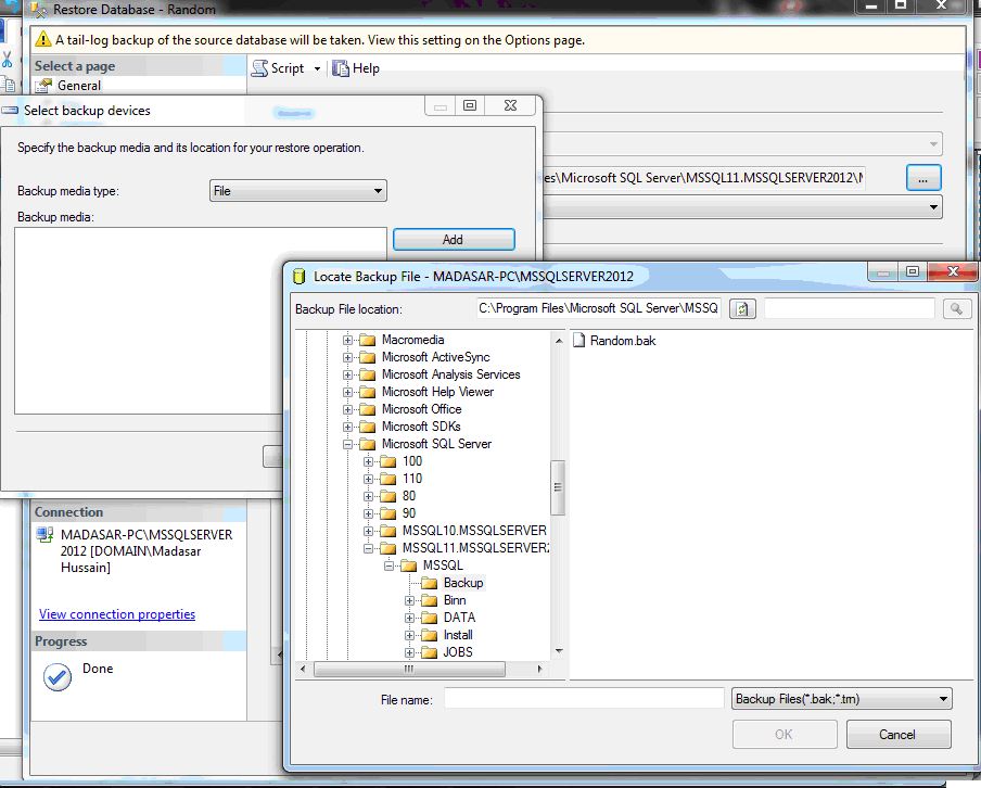 Here are the steps to restore your SQL database in SQL Server 2012.