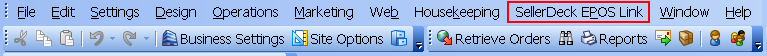 Firstly go to Business Settings\Options\Tick ‘SellerDeck Epos Link’ Apply and Ok.