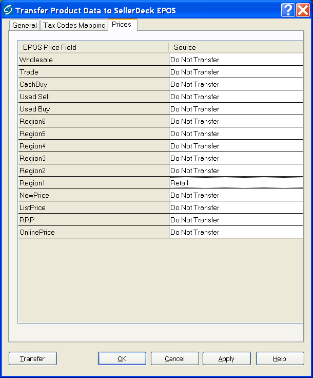 The following settings apply for the first transfer of SellerDeck Ecommerce products over to a blank (New) Epos setup.