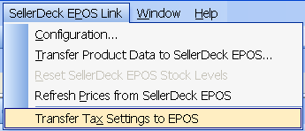 This will transfer the tax settings you made (Under the ‘Tax Codes Mapping’ Tab ) above to Epos. This needs to be done before transferring over any product data from SellerDeck Ecommerce to Epos.