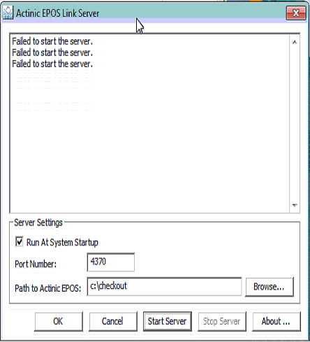 If you are finding EPOS link is not working, and when you click on “Start server” the EPOS link dialog box shows “Failed to start the server”, please see the solution below.