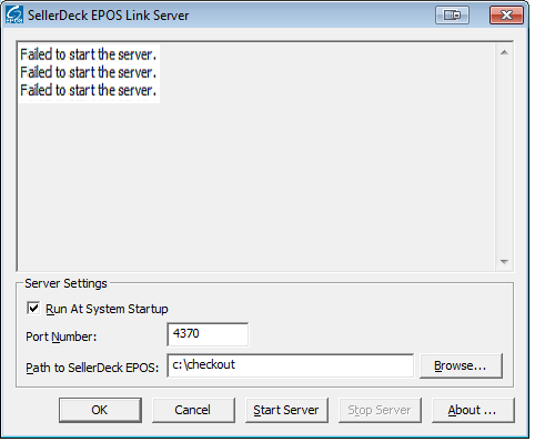 - Go to Start | Programs | SellerDeck EPOS Link.