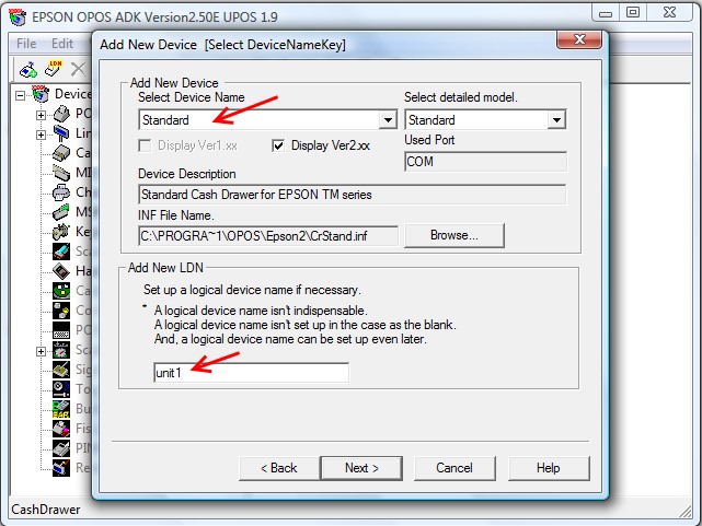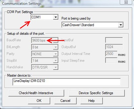 - By default OPOS installs Line Display\Receipt Printer and Cash Drawer all on Com 1. If all your hardware connects via serial port then plug your Line Display into Com 1, your printer into the port on the actual line display and your cash drawer into the back of the printer.