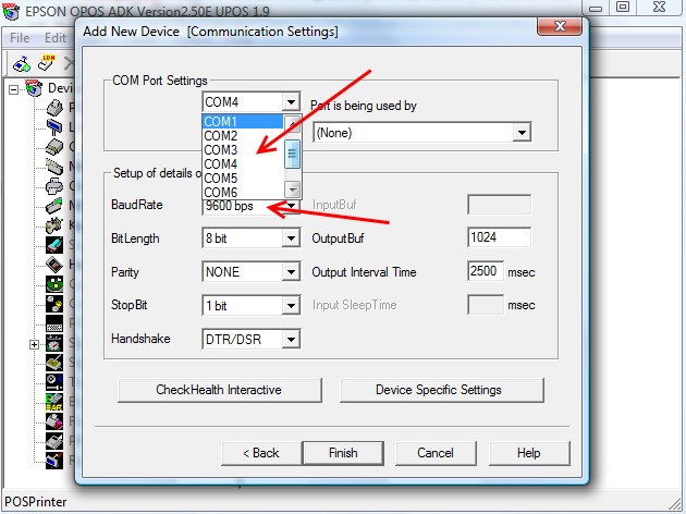 - Firstly make notes of how your current setup is configured. Go to Start\Programs\OPOS\SetupPOS Ver2.00. - Click on the little black plus sign next to the printer icon and then click on the ‘Communications Settings’ icon to check the setup.