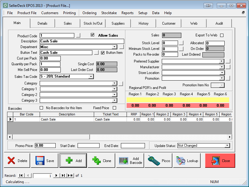 - The SellerDeck sales screen will now appear and you will now see your new product button appearing with the text and colour specified earlier.