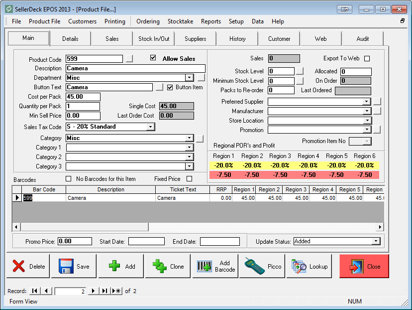 How to create a new product in EPOS and how to create a button on the sales screen for your new product. (Setup | Options | “Sales buttons”)