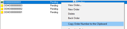 1. Right-click the new order and select ‘Copy Order Number to the Clipboard’: