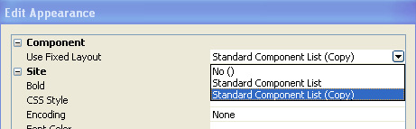 * set the 'Use fixed layout' field to the layout that you want to use for your components