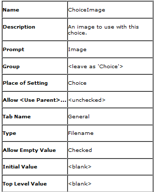 Your 'Choice Details' dialogue should now have a new entry ' Image', where you can browse for an image to add to this choice.