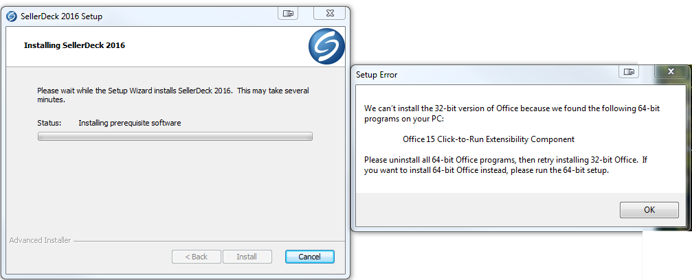 If you encounter an error when installing 2016, this might be because you have selected to install ACE drivers.