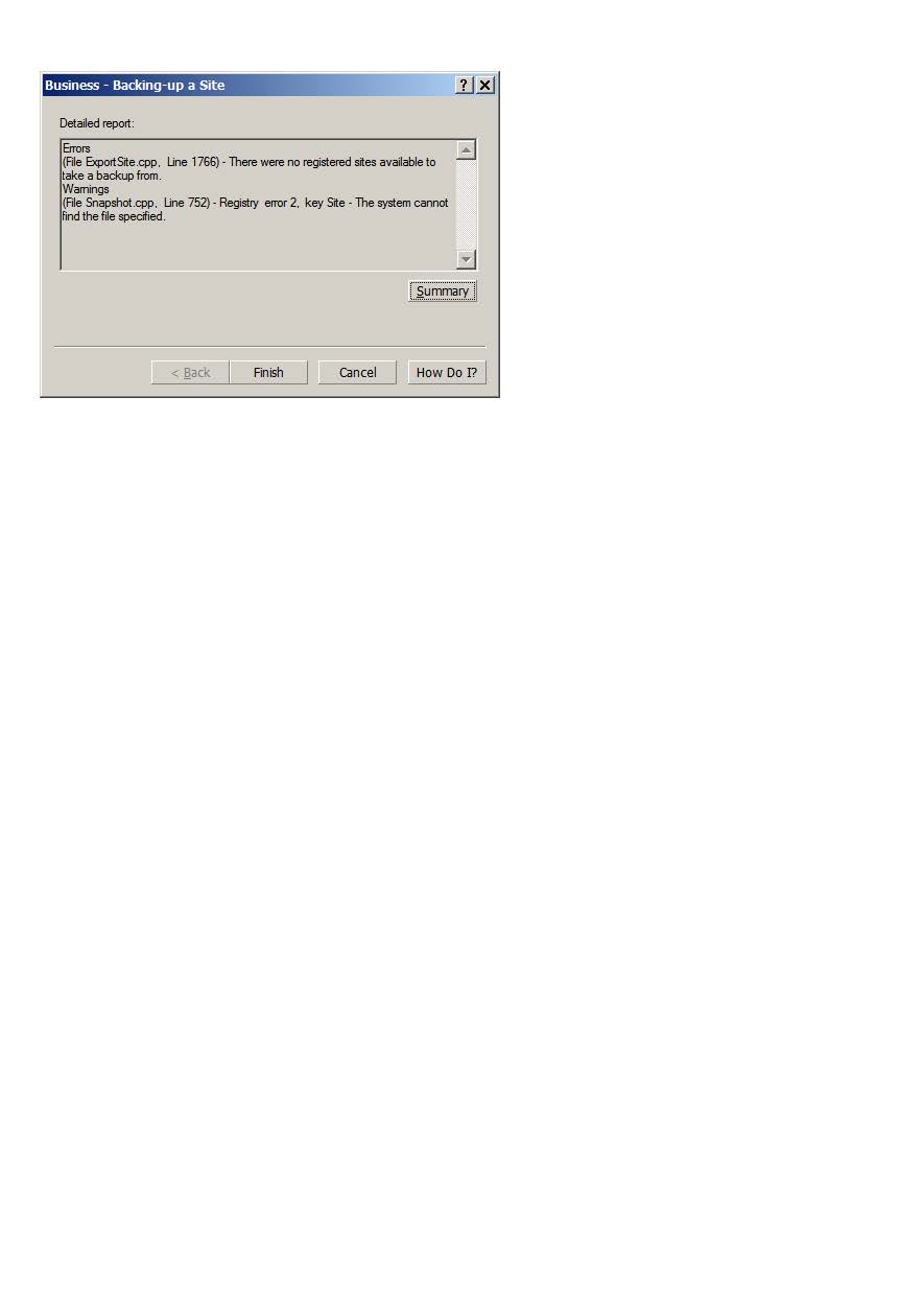 Many relevant results (including a Knowledge Base one) if you search for "there were no registered sites available to take a backup from".