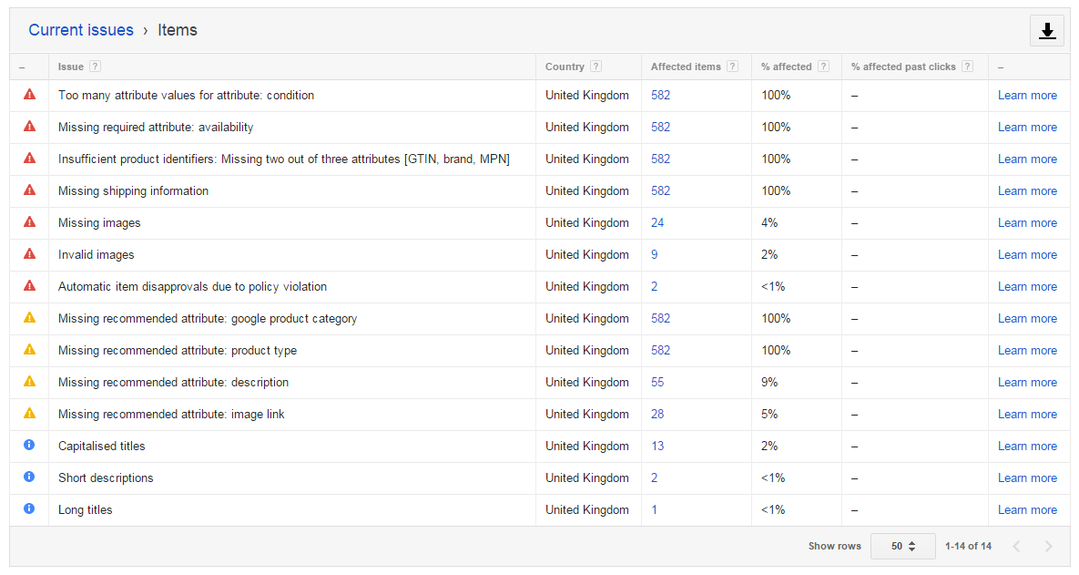 Merchant Center is giving me lots of errors which I don't know how to solve - see the screen capture attached.