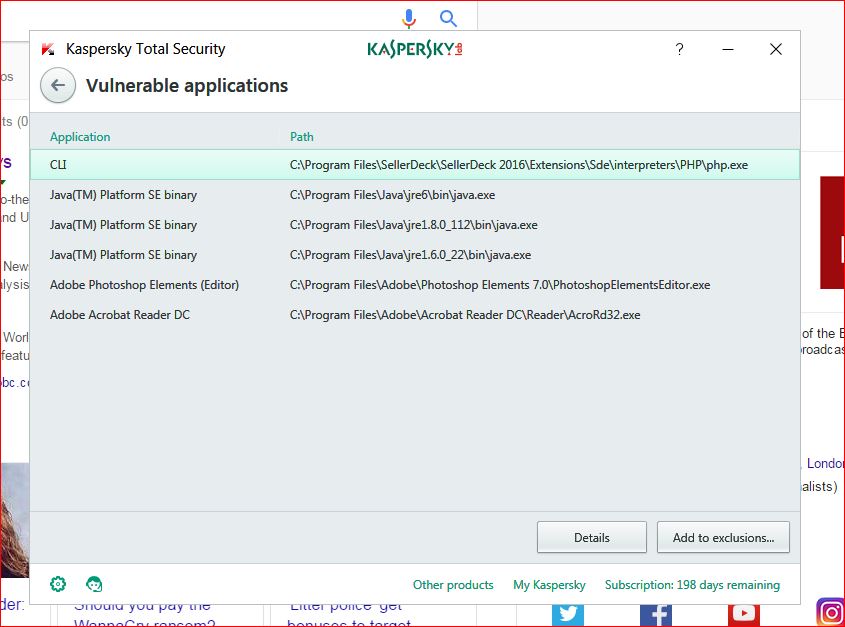 Your java application looks like it needs updating and possibly Adobe acrobat as well. I don't know why you have still have java version 6 installed. You should probably uninstall that as Version 8 is the latest and you already have that.