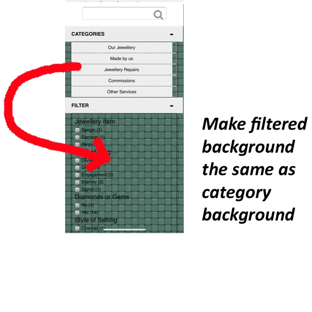Any idea on how I can change the background on the filtered mini nav menu to a solid menu like the catagories menu above?