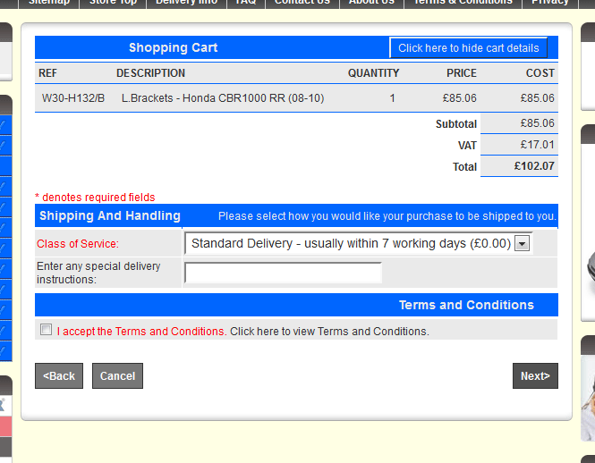 Image 2 shows the mashed checkout, as it is, online (at http://www.motorcycleintercoms.co.uk)