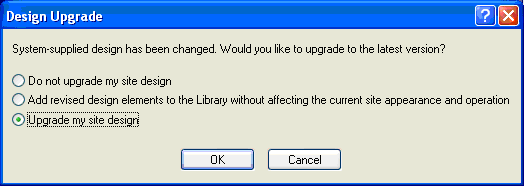 - The second option is the best one to use. It adds all Actinic's changed design elements into the site database – but gives them a different name (such as 'Site Map Section Link v8_0_3_0'). This means you can at least take a look at what Actinic has done to the layout, without it affecting your design.