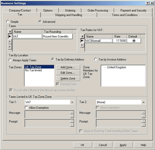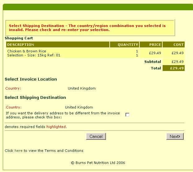 Solution: Remove all zones from the 'Shipping Bands' area within 'Business Settings | Shipping and Handling tab', except for UK. Also set 'If shipping band not defined' to 'Do not allow shipping'. To change the heading on the website from 'Select Shipping Country', go to 'Design | Text' and click on the 'Go To' button. Type 171 in the 'ID' field and click 'OK' to take you to the prompt. Update your site.