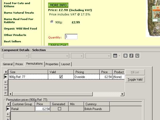 You will see that I have added text showing the actual price of £2.99 by the weight. This is only to make it look the same as all other products that do have weight choices.