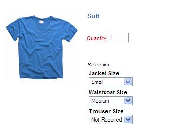 I have a 3 piece garment, 3 separate prices, and 1 price for the complete unit. All have individual independent size selections AND 2 Color choices.