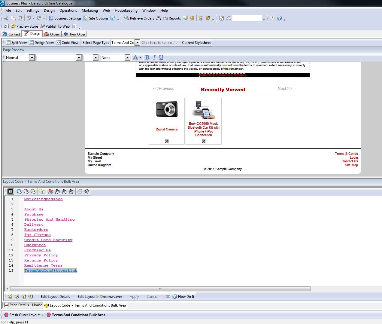 On the terms and conditions page (info.html) as standard a link to www.actinic.com appears at the bottom with the text, "Selling online with actinic ecommerce solutions".