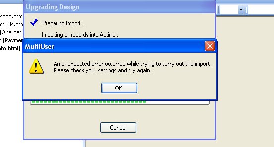 When they try opening actinic now they get the following screens popping up saying Design Upgrade (image1) They click the third option. Then another box comes up (image 2). We click the the second option and several more boxes (all with different button image upgrades) come up then after several boxes we get an error (image 3). do you know what this is?