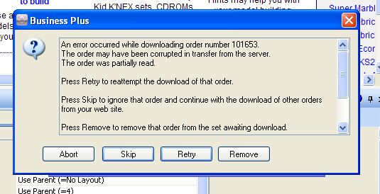 Everything went fine. But when I download todays orders I get 'An attempt was made to access an order past its end" Then when I click ok I get "Unexpected EOF found when reading an order"