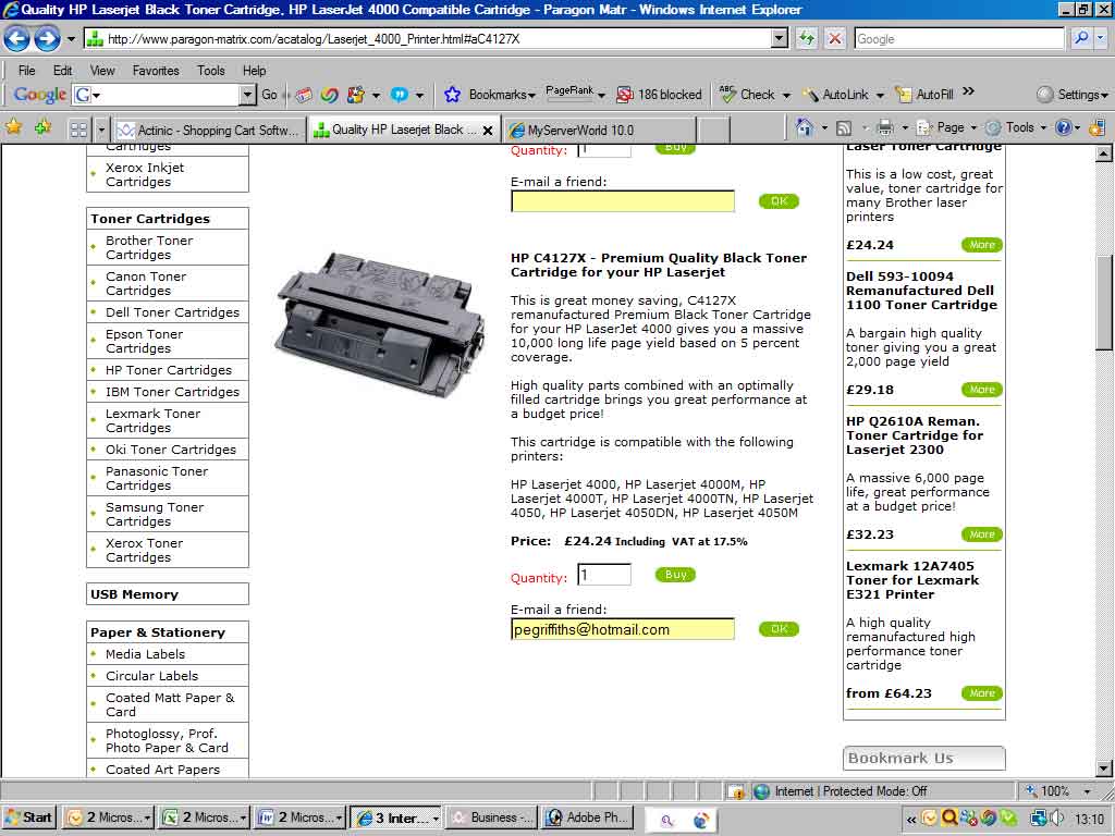 Going through customer functionality issues on our site www.paragon-matrix.com and have found that the E-mail a friend function that we have on all our product pages are giving errors when used.