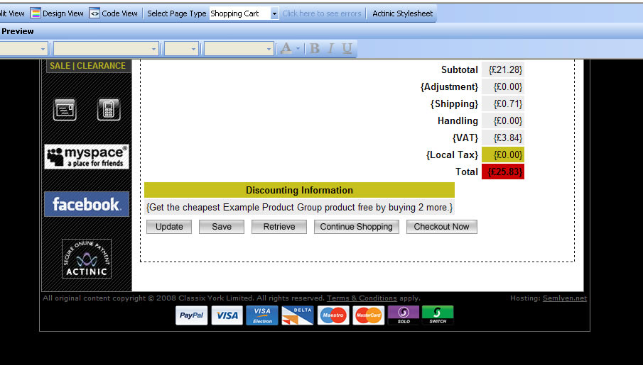 i've also attached two pic showing what i'm seeing within Actinic & the main code in which my checkout pages are using