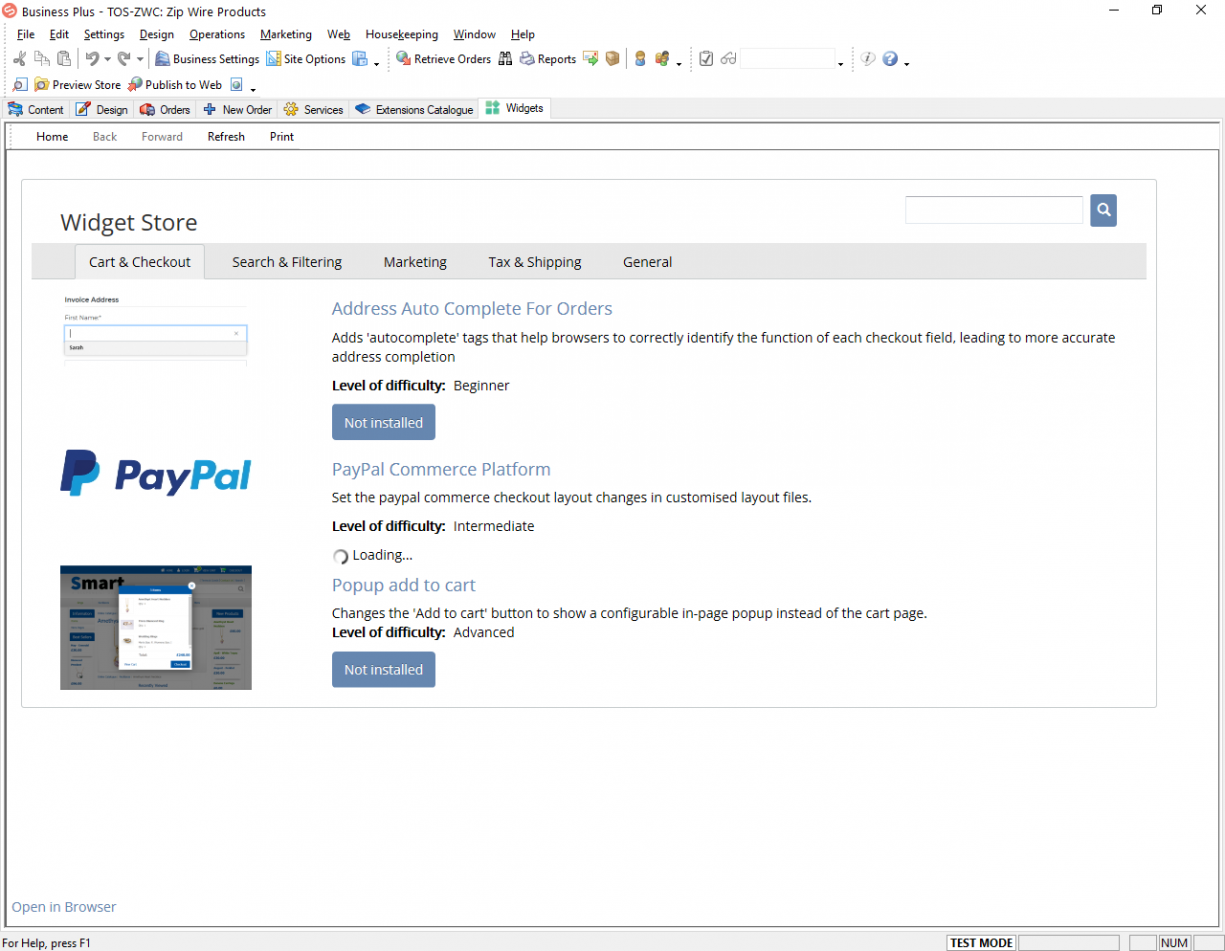 I am trying to install PayPal Commerce Platform via the Widgets > Cart & Checkout tab in Sellerdeck v 18.1.2 yet the button continually shows as loading.