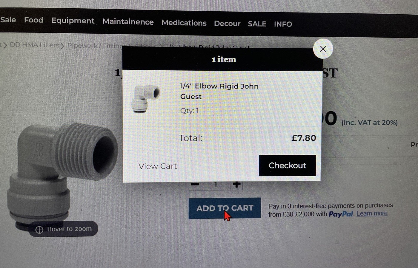 I have used this for a long time but just pointed out to me that if somebody adds a single item say costing £3.00 – the pop up shows it as £7.80
