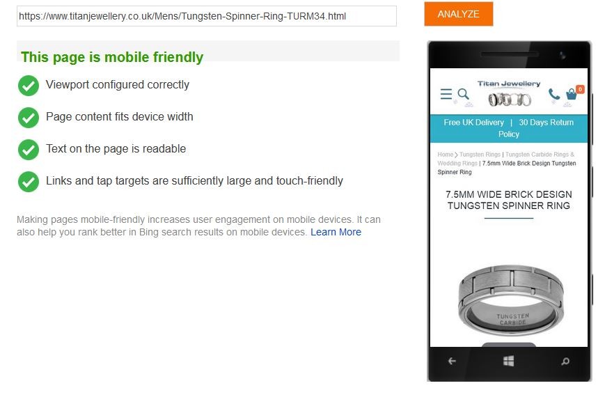 However, if I leave Google Search Console, and go direct to the Google Mobile Usability tool I get this