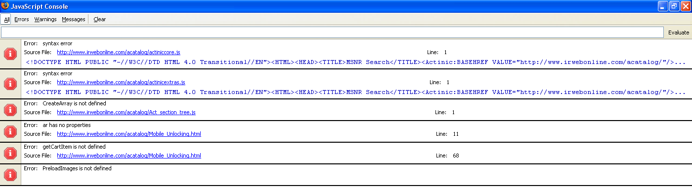 I can't see an error either. It shows 'Done' in the status bar and the page looks OK. Im using XP Pro and Firefox.