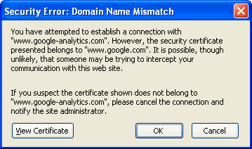 I received a Google-Analytics error warning when hitting checkout saying mis-match of certificates! This would certainly make me hit the cancel button.