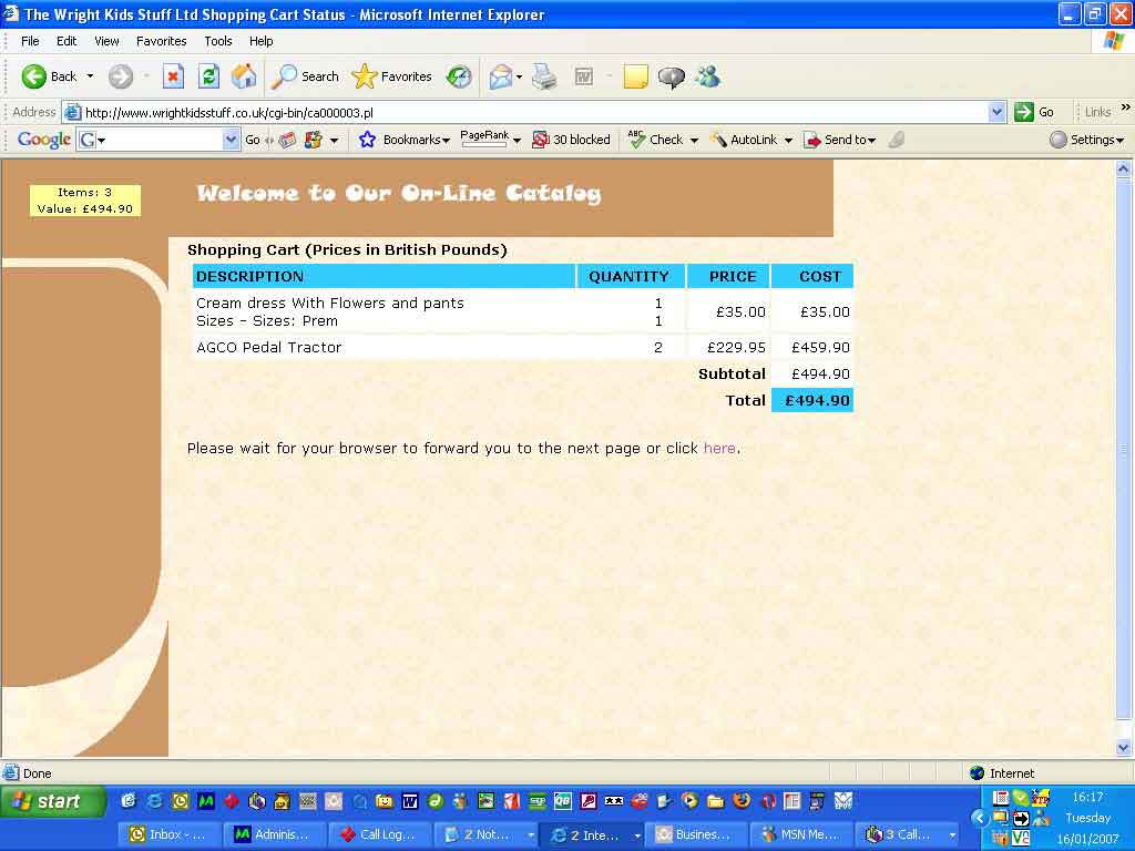 i just have one small problem now i have a sub domain on a main domain name but when i add to cart it bounces back to the sub domain address and its showing nothing in the cart but if you go to checkout its all there, the reason i have a sub domain is because my old hosting company was rubbish with help so i change but as they would not change the namesever to direct my site to my new host i had to get another domain name, i have managedto get the old domain diverted now so that is my sub domain have you any idea why the cart is bouncing to the sub domain URL if you would like to see the problem www.wrightkidsstuff.co.uk/acatalog/shop.html add something to cart and the url will change to old domain www.thewrightkidsstuff.co.uk and page not found.