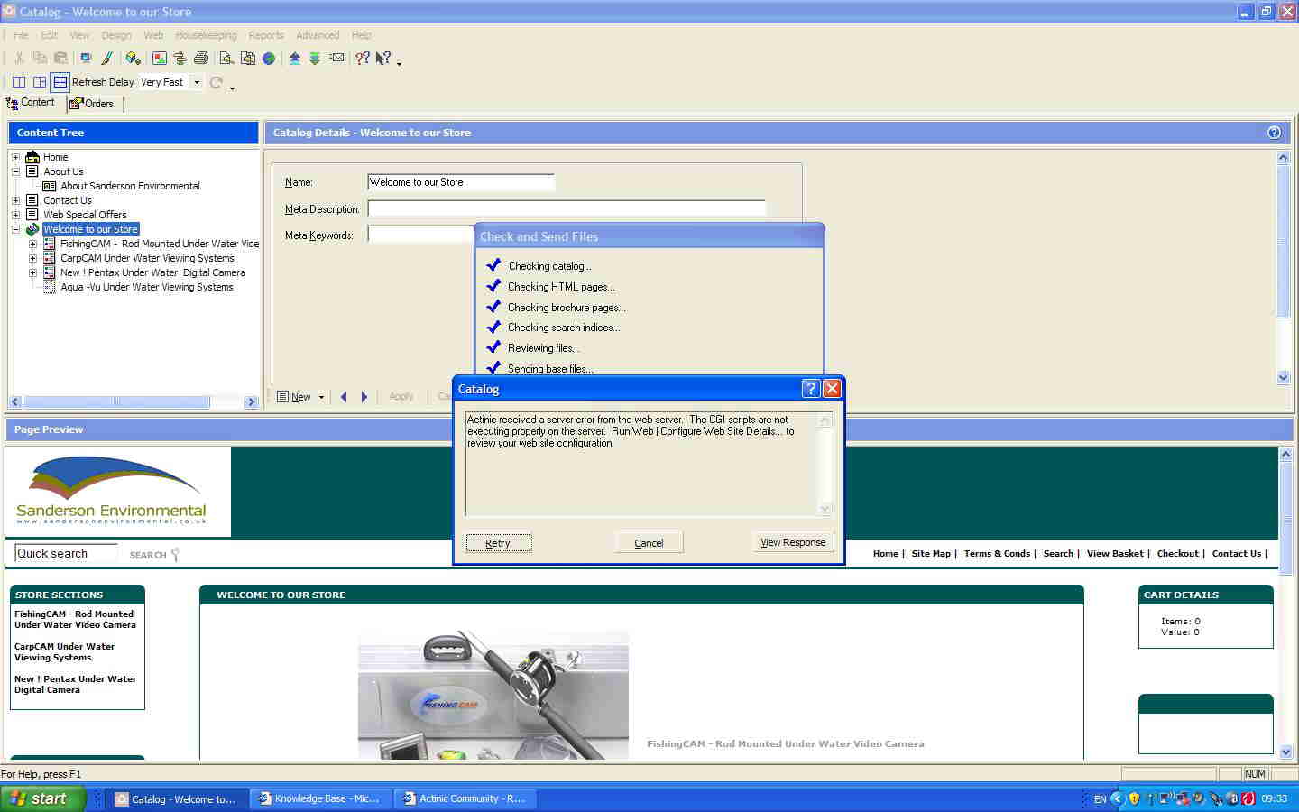 just set up a new store in Actinic V7 , clicked update to upload site, it got as far as "Checking Search Indices then the upload box just vanished and the whole upload process stops.
