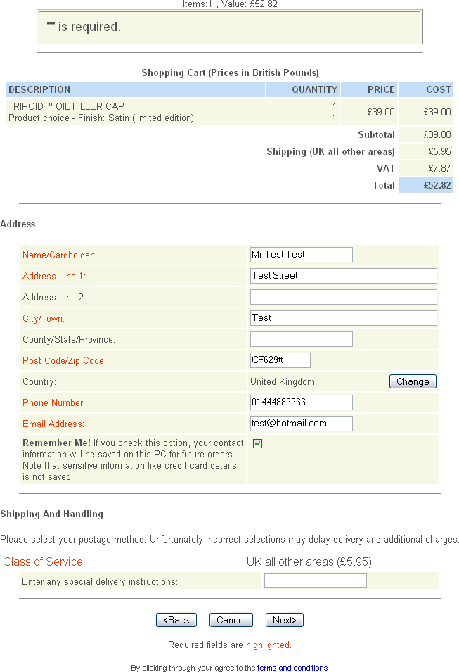 It turns out address line 2 is compulsory? If I add text to this field it works. At least I know what it is now.