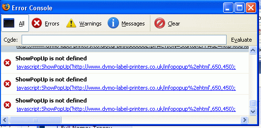 On one of my sites the T&C popup on the first page of the checkout doesn't work. If you click on the link it just displays an "error on page" warning in the bottom left corner (in IE) - but no pop-up.